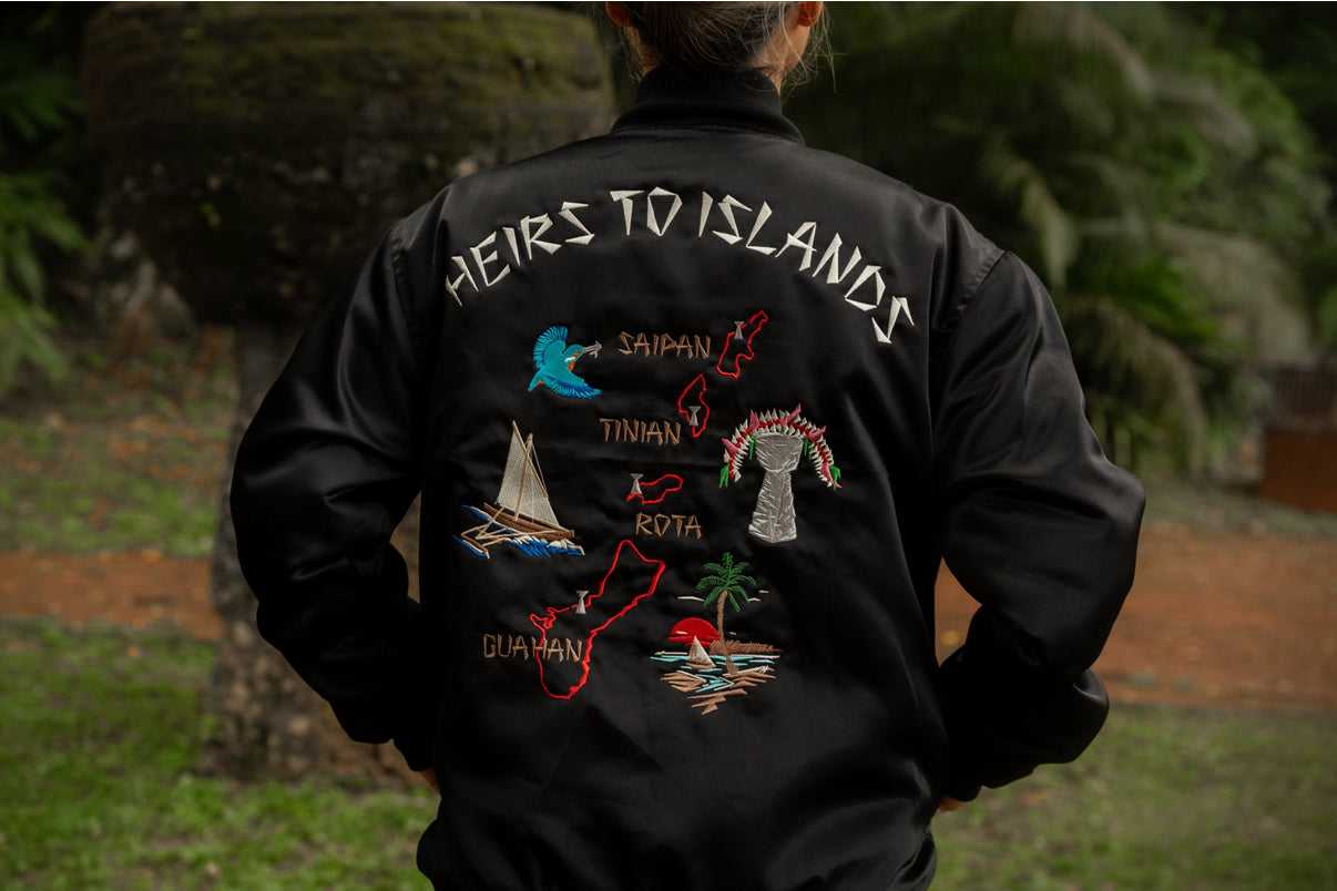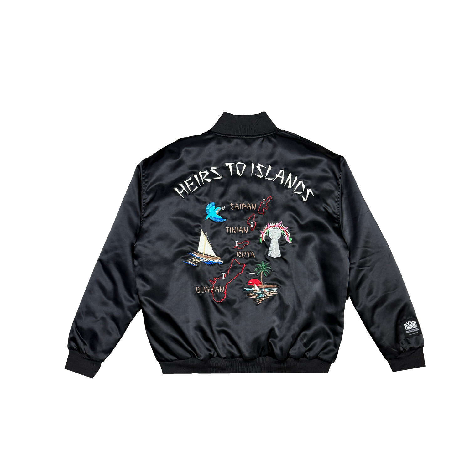 Heir to the Crown Map Satin Bomber Jacket- Black